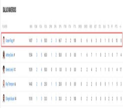 弗拉格首秀对阵雷霆14分钟,6中3,三分3中2,拿到10分6篮板3助攻1盖帽,命中率50%,三分命中率66.7%,很明显弗拉格还是更喜欢接球投篮与接球顺步突破,他要打个人持球攻在NBA很痛苦。