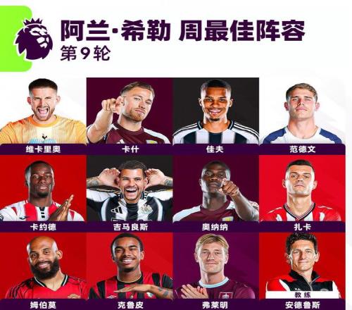 雷速体育10月28日宣 英超第9轮上周末结束,阿兰·希勒评选本轮最佳11人阵容,曼联球员姆伯莫双响入选,卡什、扎卡在列。