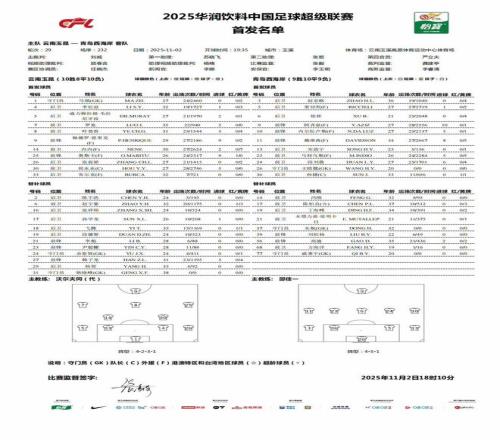 北京时间11月2日19:35,中超第29轮,云南玉昆主场对阵青岛西海岸。赛前首发公布。