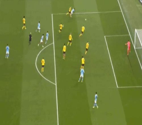 第22分钟,赖因德斯右路送出直传,多特后防线选择后撤,福登停球转身从容起脚远射,洞穿科贝尔的十指关,曼城取得领先,1-0!