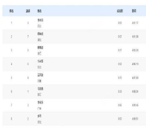 11月10日,全运会游泳女子400米自由泳:河北选手李冰洁夺得金牌,成绩为4:01.17,杨佩琪4:01.90收获银牌,柳雅欣4:03.20获得铜牌。
