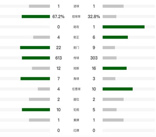 第44分钟,麦卡利斯特禁区内无人盯防接到传中后甩头攻门,皮球击中立柱出了底线。