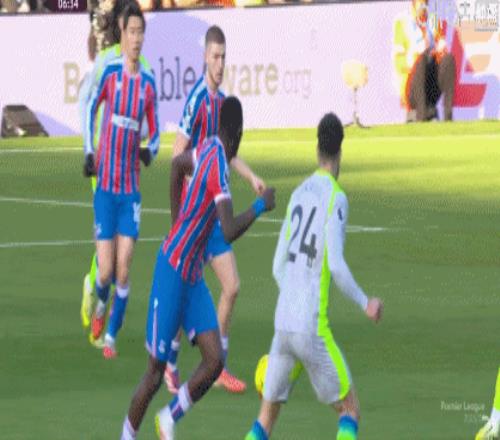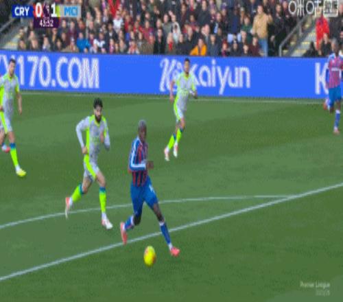第50分钟,水晶宫反击,伊斯梅拉-萨尔突入禁区扣球被破坏