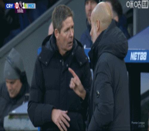 第57分钟,镜头给到瓜迪奥拉与格拉斯纳在场边交流