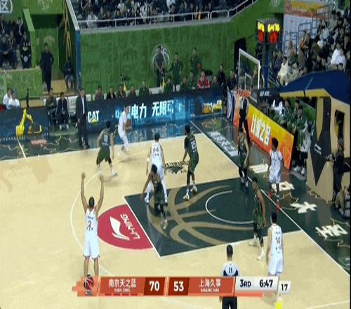 南京男篮外援马内克突然爆发,三分球三连击,直接打停上海男篮。