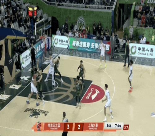 次节,郭昊文强突刘礼嘉,上篮and one,加罚命中,南京男篮38-25领先于上海队。