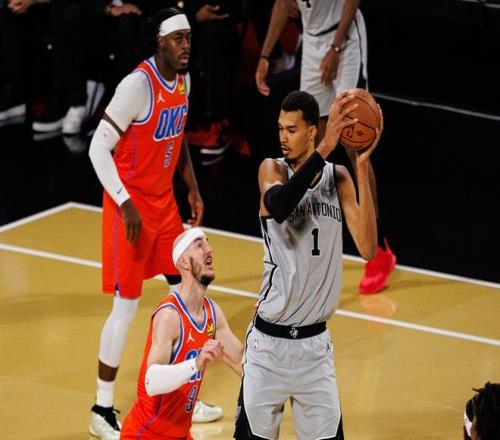 当然,我们知道如果单纯用罚球数对比难免有失偏颇,但如果罚球数少的同时,充斥着大量关键时刻的罚球福利,那意味着更是司马昭之心路人皆知。雷霆通过战绩把自己包装成联盟最强,甚至NBA历史上净效率值最高的球队,这一泡沫被戳破的过程,马刺将联盟的遮羞布撕下来。马刺是典型的放投不放突,能击败马刺的球队存在,比如勇士。因为11月份库里一场轰46分,一场轰49分,用三分球打穿了马刺的防线。可是雷霆不行啊,雷霆一没有稳定投射空间点,二是依靠一些关键吹罚获利,三是没人对得上文班亚马。